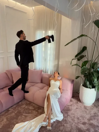Η γνωστή influencer παραχώρησε το σπίτι της στη Θεσσαλονίκη, όπου η νύφη ετοιμάστηκε για τη μεγάλη μέρα, έχοντας φροντίσει κάθε λεπτομέρεια – ακόμη και κρεμάστρες με τα ονόματα όλων των παρανύφων.