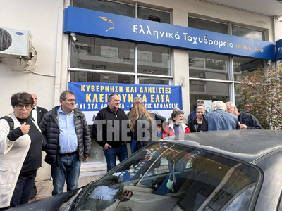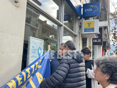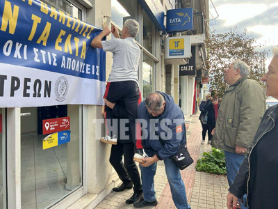 Παράσταση διαμαρτυρίας πραγματοποιήθηκε σήμερα, έξω από το κατάστημα των ΕΛΤΑ στην οδό Ανθείας, το οποίο σταμάτησε να λειτουργεί από χθες.