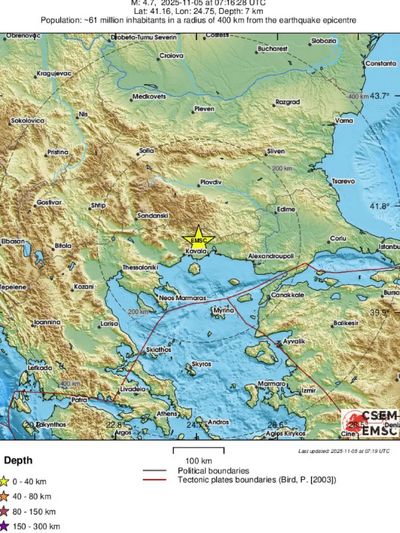 Το Ευρωμεσογειακό Σεισμολογικό Ινστιτούτο κατέγραψε τη δόνηση στα 4,7 Ρίχτερ.