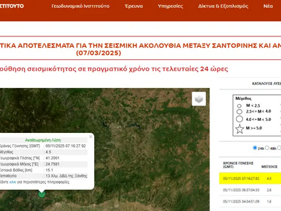 Το Ευρωμεσογειακό κατέγραψε τη δόνηση στα 4,7 Ρίχτερ