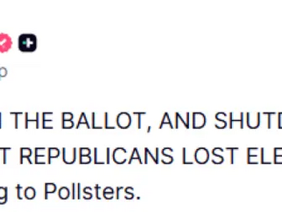«Ο ΤΡΑΜΠ ΔΕΝ ΗΤΑΝ ΣΤΟ ΨΗΦΟΔΕΛΤΙΟ ΚΑΙ ΤΟ SHUTDOWN ΗΤΑΝ ΟΙ ΔΥΟ ΛΟΓΟΙ ΠΟΥ ΟΙ ΡΕΠΟΥΜΠΛΙΚΑΝΟΙ ΕΧΑΣΑΝ ΤΙΣ ΕΚΛΟΓΕΣ ΑΠΟΨΕ», έγραψε ο Τραμπ, επικαλούμενος «δημοσκόπους» χωρίς να τους κατονομάζει. Πρόκειται για την πρώτη του δημόσια τοποθέτηση μετά τα αποτελέσματα της Τρίτης, τα οποία έδειξαν απώλειες για το Ρεπουμπλικανικό Κόμμα σε καίριες αναμετρήσεις.