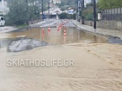 Ισχυρές πλημμύρες προκλήθηκαν σε όλη τη Σκιάθο το μεσημέρι της Τετάρτης (05.11.2025) λόγω της κακοκαιρίας και των έντονων βροχοπτώσεων που έχουν «χτυπήσει» αρκετές περιοχές της χώρας τις τελευταίες ώρες.