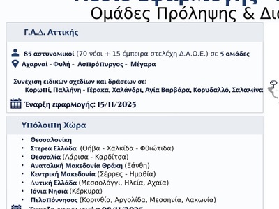 Η εφαρμογή του σχεδίου αστυνόμευσης ξεκινά από την περιφέρεια αύριο, Σάββατο 8 Νοεμβρίου 2025 και από τις 15 Νοεμβρίου στους οικισμούς της Αττικής.
