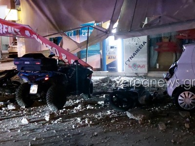 Ζημιές έχουν προκληθεί σε αυτοκίνητα, μηχανάκια ενώ μέχρι στιγμής, ευτυχώς, δεν υπάρχουν πληροφορίες για τραυματισμό. Κομμάτια από οικοδομικά υλικά έπεσαν πάνω σε στύλο της ΔΕΗ με αποτέλεσμα να υπάρξει διακοπή ρεύματος ενώ στο σημείο βρέθηκε η Τροχαία για την ρύθμιση της κυκλοφορίας. Όπως ανέφεραν αυτόπτες μάρτυρες, από θαύμα δεν τραυματίστηκε κάποιος διερχόμενος.
