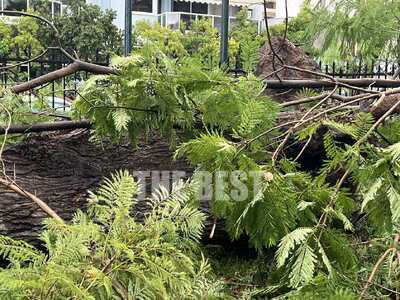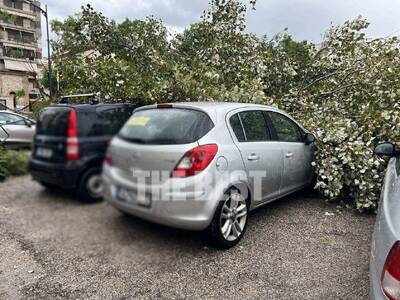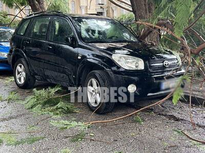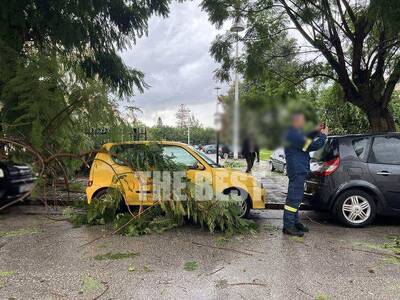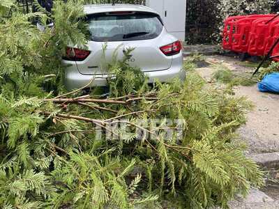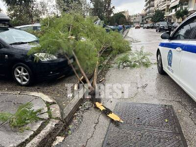Τα δέντρα (άλλα ξεριζώθηκαν, άλλα έσπασαν), σωριάστηκαν πάνω σε σταθμευμένα αυτοκίνητα ενώ από θαύμα γλίτωσαν οι περαστικοί από το σημείο.