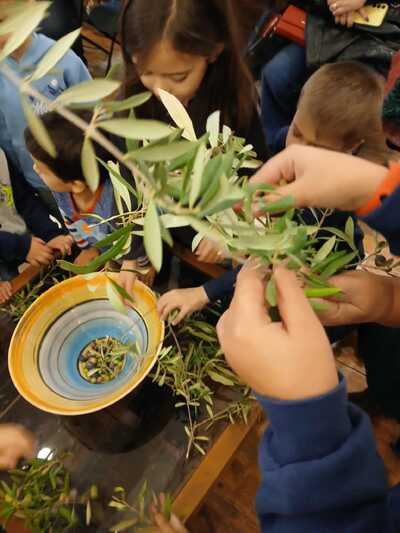 Αναζητούμε την προσφορά και την αξία της ελιάς, μέσα από τη Μυθολογία, την Ιστορία, τη Θρησκεία, την Παράδοση και τις Τέχνες. Συζητάμε για τη συμβολή της στην υγιεινή διατροφή, γευόμαστε φρέσκο λάδι, αγουρέλαιο και δημιουργούμε το κολατσιό μας και κεράσματα με παραδοσιακές συνταγές.