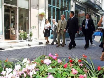 Ο Δήμαρχος της Πάτρας κ. Γιάννης Δημαράς και τα μέλη της κινέζικης αντιπροσωπείας του Γου Σι περπάτησαν σήμερα το πρωί στη Ρήγα Φεραίου. Στον πεζόδρομο έχουν τοποθετηθεί banners τα οποία έφερε μαζί της η αποστολή, με χαρακτηριστικές εικόνες από την πόλη του Γου Σι.