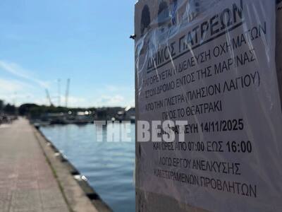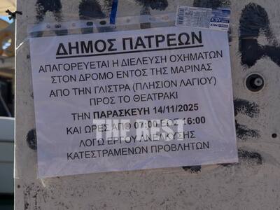 Ο Δήμος Πατρέων ανακοίνωσε την έναρξη των εργασιών για την απομάκρυνση των κατεστραμμένων προβλητών, που είχαν υποστεί σοβαρές ζημιές από τις θεομηνίες που είχαν χτυπήσει την περιοχή τα προηγούμενα χρόνια. Ως εκ τούτου την Παρασκευή δεν θα επιτρέπεται η κυκλοφορία οχημάτων στην παραλιακή οδό -εντός μαρίνας- καθώς θα γίνονται εργασίες με γερανοφόρα οχήματα και φορτηγά.