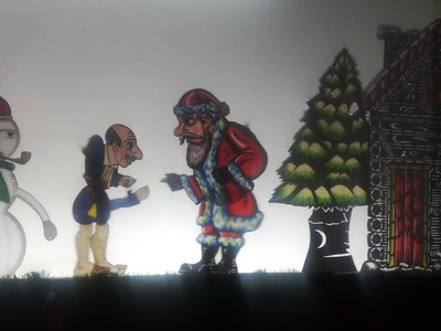 Χριστουγεννιάτικη ατμόσφαιρα στο καραγκιοζοθέατρο Περί Σκιών (στην οδό Νόρμαν 20, Αγ. Διονύσιος, Πάτρα) και ο Καραγκιόζης του Χρήστου Πατρινού φοράει τα εορταστικά του.