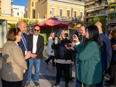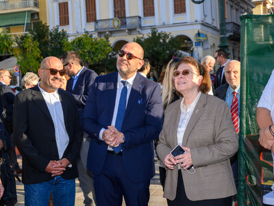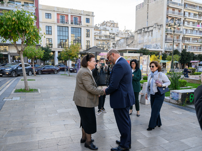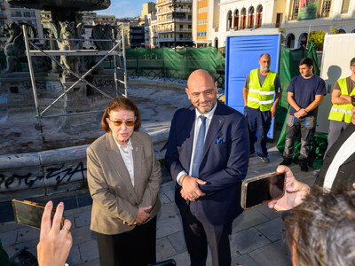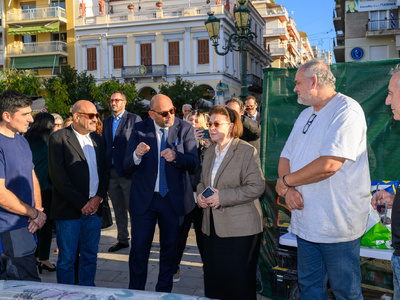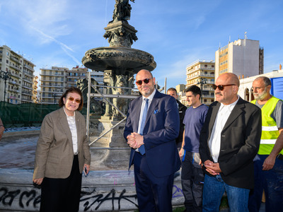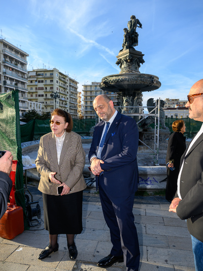 Η Λίνα Μενδώνη πραγματοποίησε αυτοψία στα σιντριβάνια της πλατείας Γεωργίου στην Πάτρα, εστιάζοντας στην κατάσταση διατήρησης των μνημείων και στην πρόοδο των διαδικασιών για την αποκατάστασή τους.