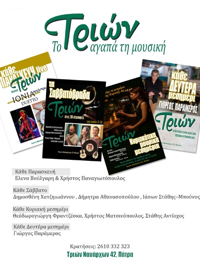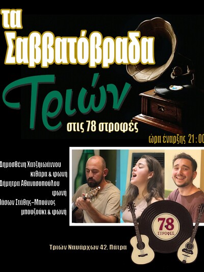 Μάθαμε μάλιστα από τον αξιαγάπητο κύριο Άρη πως από αυτό το Σάββατο 22/11 και κάθε Σάββατο βράδυ, ο χρόνος στο "Τριών" θα κυλά πάνω σε δίσκους βινυλίου 78 στροφών και θα συναντά τις επιτυχίες και την αλήθεια της εποχής.