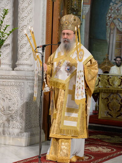 Ο σεβασμιότατος Μητροπολίτης Πατρών κ.κ. Χρυσόστομος, τέλεσε τήν Θεία Λειτουργία στόν μεγαλοπρεπῆ ἱερό Ναό τοῦ Ἁγίου Ἀποστόλου Ἀνδρέου καί μίλησε δεόντως.