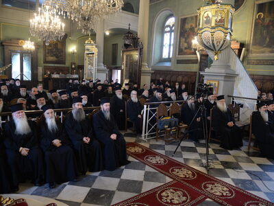 Ἐν συνεχείᾳ στόν Παλαιό Ἱερό Ναό τοῦ Ἀποστόλου Ἀνδρέου, πραγματοποιήθηκαν οἱ ἐργασίες τῆς Ἱερατικῆς Συνάξεως μέ τήν συμμετοχή τοῦ Ἱεροῦ Κλήρου τῆς Ἱερᾶς Μητρόπολεως Πατρῶν καί ὁμιλητήν τόν σεβασμιότατο Μητροπολίτη Μεσογαίας καί Λαυρεωτικῆς κ. Νικόλαον, τόν ὁποῖον προσεφώνησε μέ θερμούς λόγους καί εὐχαρίστησε ο σεβασμιότατος Μητροπολίτης Πατρῶν κ.κ. Χρυσόστομος, γιά τήν ἀποδοχή τῆς προσκλήσεως, νά ἒλθῃ στήν Πάτρα καί νά μιλήσῃ στήν Γενική Ἱερατική Σύναξη τῆς Μητροπόλεως.
