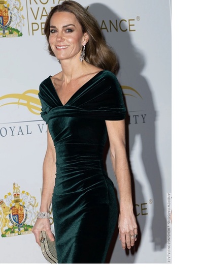 Συγκεκριμένα, η πριγκίπισσα της Ουαλίας ντύθηκε με μια τέτοια δημιουργία για το ετήσιο φιλανθρωπικό γεγονός της Royal Variety Performance, όπου πάντα διαλέγει πολύ αμπιγιέ φορέματα. Το βράδυ της Τετάρτης στο Royal Albert Hall τρέλανε λοιπόν τα φλας με βελούδινη, μακριά τουαλέτα Talbot Runhof, ένα brand από το Μόναχο. Τα media αποκάλεσαν μάλιστα το look της «breathtaking».
