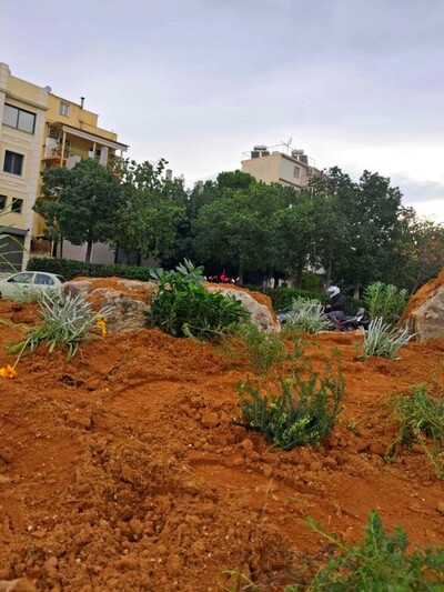 Στο σημείο τοποθετήθηκε λευκή πέτρα και φυτεύτηκαν νέα φυτά, προσδίδοντας φρεσκάδα και ομορφιά στην περιοχή.