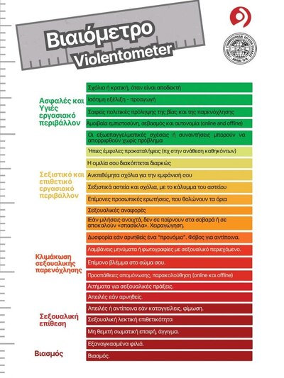 Το «βιαιόμετρο» σχεδιάστηκε συμμετοχικά από τη Συνομοσπονδία Ευρωπαϊκών Συνδικάτων (ETUC), για να βοηθά στον έγκαιρο εντοπισμό και την κατάλληλη αντιμετώπιση της βίας και της παρενόχλησης λόγω φύλου στον χώρο εργασίας.