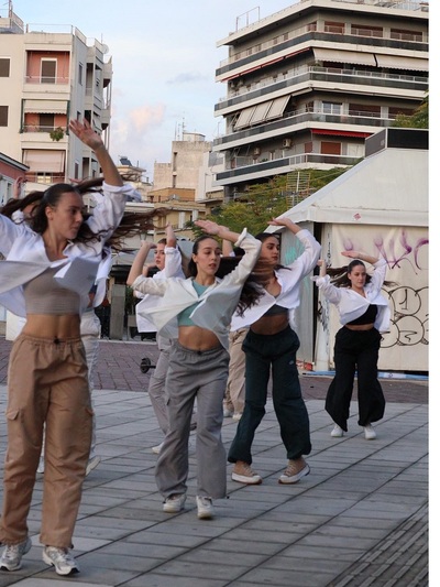 Kαταχειροκροτήθηκαν η καθηγήτρια χορού Βασιλική Ανδρικοπούλου και οι μαθήτριές της, σε υπαίθρια παρουσίαση στο κέντρο της Πάτρας. Αφορμή η επέτειος 10 χρόνων της ομώνυμης σχολής.