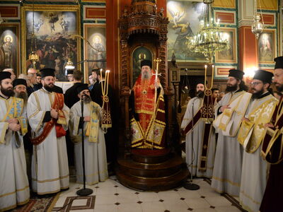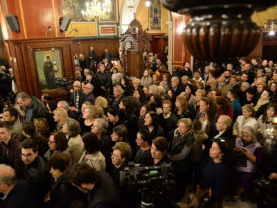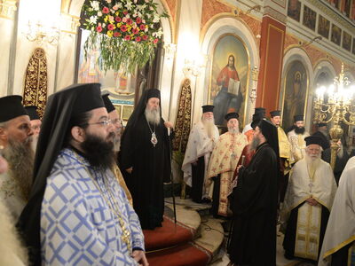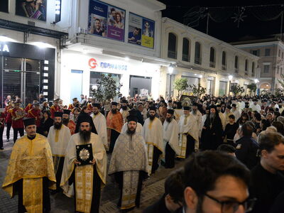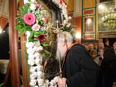 Τὸ Ἱερὸ Εἰκόνισμα τῆς Θεοτόκου τῆς Ἐσφαγμένης μετεφέρθη μὲ λιτανευτικὴ πομπὴ στὸν Ἱερὸ Μητροπολιτικὸ Ναὸ Εὐαγγελιστρίας Πατρῶν, ὅπου ἐτελέσθη Δοξολογία καὶ ἐνσυνεχεῖ Ἱερὰ Παράκλησις πρὸς τὴν Ὑπεραγίαν Θεοτόκον.