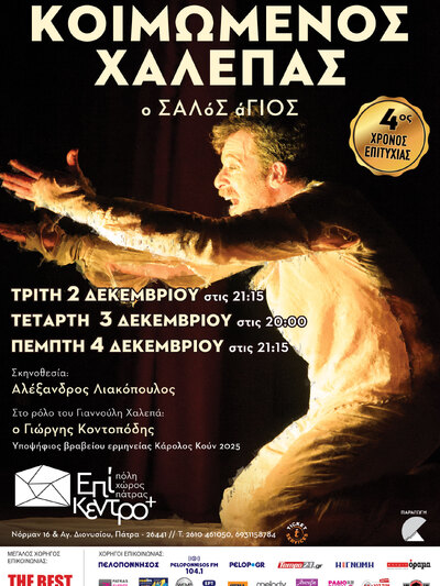 Η παράσταση «Κοιμώμενος Χαλεπάς, Ο Σαλός Άγιος» με τον Γιώργη Κοντοπόδη θα παιχθεί την Τρίτη 2, την Τετάρτη 3 & την Πέμπτη 4 Δεκεμβρίου 2025