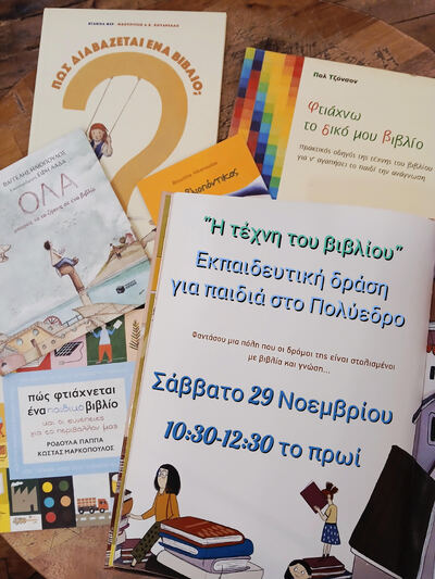 Μαθαίνουμε για την ιστορία του βιβλίου και φτιάχνουμε ο καθένας ένα δικό του μικρό χειροποίητο βιβλιαράκι, αναφέρει η σχετική ανακοίνωση.