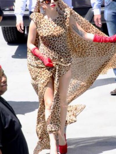 Συνεχίζοντας την ραδιοφωνική περιοδεία της, η Lady Gaga επισκέφτηκε το KIIS Fm για μια συνέντευξη με τον παραγωγό JoJo στο Λος Άντζελες. Η τραγουδίστρια δεν πέρασε φυσικά απαρατήρητη με το γνωστό στιλ της φορώντας ένα λεοπάρ φόρεμα συνδυασμένο με κόκκινα μακριά γάντια και κόκκινες από βελούδο γόβες Christian Louboutin αλλά και μια λεοπάρ κάπα.