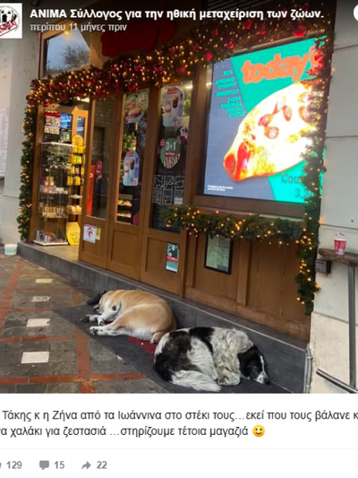 Ο Τάκης – όπως τον αποκαλούν οι κάτοικοι – κυκλοφορεί καθημερινά στο κέντρο και συχνά αράζει παρέα με άλλους σκύλους.