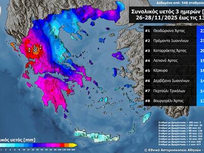 Όπως φαίνεται χαρακτηριστικά στον χάρτη, σύμφωνα με το δίκτυο σταθμών του meteo.gr / Εθνικού Αστεροσκοπείου Αθηνών, το ύψος βροχής ξεπέρασε τα 100 χιλιοστά σε 36 σταθμούς, τα 80 χιλιοστά σε 63 σταθμούς και τα 60 χιλιοστά σε 138 σταθμούς. Επιπλέον, 3 σταθμοί στην Ήπειρο, και πιο συγκεκριμένα στα Τζουμέρκα, κατέγραψαν πάνω από 200 χιλιοστά, επιβαρύνοντας ακόμη περισσότερο την ήδη δύσκολη κατάσταση στην περιοχή, καθώς η συνολική μηνιαία βροχόπτωση για τον Νοέμβριο έχει πλέον υπερβεί τα 900-1000 χιλιοστά.