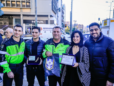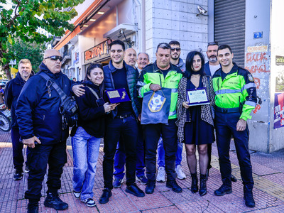 Παράλληλα, η ηγεσία της υπηρεσίας του ήταν εκεί για να τον βραβεύσει, όπως και η Τοπική Διοίκηση Αττικής της Διεθνούς Ενώσεως Αστυνομικών. Παρόντες στη συνάντηση ήταν και συνάδελφοί του τροχονόμοι της ίδιας υπηρεσίας οι οποίοι κι αυτοί συνταξιοδοτήθηκαν και βραβεύτηκαν.
