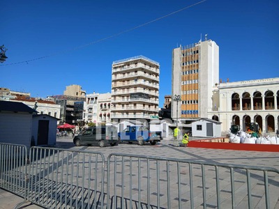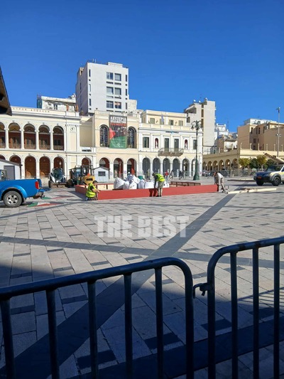 Ξεκίνησαν σήμερα (Δευτέρα 1η Δεκέμβρη) οι προεργασίες για τον στολισμό της πλατείας Γεωργίου με τη δημιουργία του χριστουγεννιάτικου χωριού.