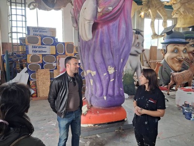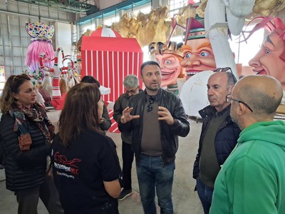 Το Σάββατο 29 Νοεμβρίου το πρωί η αντιπροσωπεία του Καρναβαλιού του Πουτινιάνο επισκέφτηκε το χώρο του Καρναβαλικού Εργαστηρίου του Δήμου Πατρέων στο Πετρωτό όπου ξεναγήθηκε διεξοδικά από τους καλλιτέχνες-δημιουργούς των καρναβαλικών κατασκευών για τον τρόπο και τη διαδικασία παρασκευής των αρμάτων και την ιδιαίτερη τεχνοτροπία που έχει καταστήσει το Καρναβαλικό Εργαστήρι μοναδικό στο είδος του. Οι επισκέπτες εξέφρασαν μεγάλο ενδιαφέρον για τον τρόπο δημιουργίας και τα υλικά των αρμάτων του Πατρινού Καρναβαλιού (φελιζόλ κλπ) ο οποίος διαφέρει από τον τρόπο κατασκευής των αρμάτων του Καρναβαλιού του Πουτινιάνο (τεχνική του χαρτιού, παπιέ μασέ) που οι υπερμεγέθεις διαστάσεις τους κυριαρχούν στο μακροβιότερο Καρναβάλι της Ευρώπης του οποίου η πρώτη πομπή πραγματοποιήθηκε το 1394.