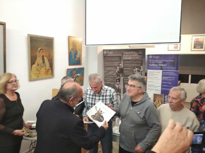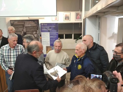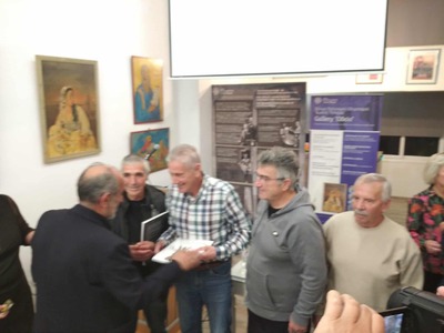 Επίσης, εντυπωσίασε, η οπτικοακουστική παρουσίαση του Κίμωνα Αποστολόπουλου με τις συγκινητικές αναφορές και τιμητικές βραβεύσεις με το ιστορικό ενθύμημα βιβλίο-λεύκωμα του Δρ.Μαλλιά Θεόδωρου «Οι Καλλιτέχνες Δημιουργούν Πολιτισμό και την αναμνηστική Αρχαϊκή καρφίτσα δρομέων αθλητών, στους παρόντες διαχρονικούς Μαραθωνοδρόμους, που είδαν τον εαυτό τους στην παρουσίαση να ξεπερνά τα ανθρώπινα όρια ακόμα και σε υπερμαραθώνιες διαδρομές, μέσα στα δάση τα βουνά στις Άλπεις, στην Γαλλία, την Ρώμη την Κύπρο μεταφέροντας το «νενικήκαμε», μήνυμα Αριστείας στην συμμετοχή και την «Ευγενή Άμιλλα»