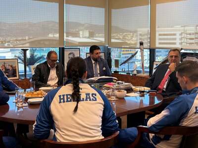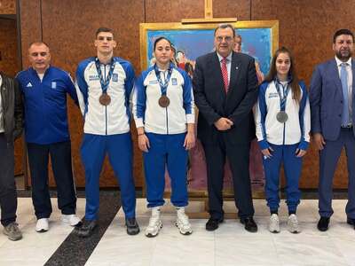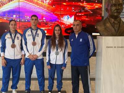Μαζί με την Γιαννακοπούλου υποδέχθηκαν και τους «χάλκινους» μεταλλιούχους Βασιλική Σταυρίδου και Ζαχαρία Μυλωνά, παρουσία του Α’ Ειδικού Γραμματέα κ. Κώστα Γκόγκου, του κ. Χάρη Μαριόλη και φυσικά του κ. Πλέα, ο οποίος με τη διαρκή του καθοδήγηση συμβάλλει στην εντυπωσιακή πορεία της Εθνικής ομάδας.
