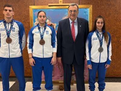 Ο Πρόεδρος της ΕΟΕ κ.Ισίδωρος Κούβελος υποδέχθηκε τους μεταλλιούχους της Ελληνικής Πυγμαχίας