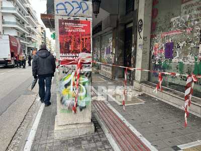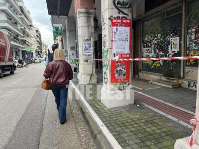 Το πεζοδρόμιο έχει αποκλειστεί με κορδέλες από την Αστυνομία