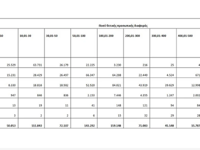Κατανομή συνταξιούχων με προσωπική διαφορά ανά ποσό σύνταξης και ποσό προσωπικής διαφοράς: