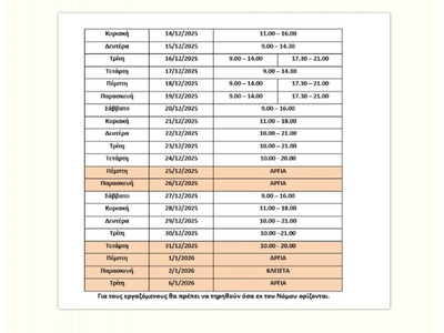 Το εορταστικό ωράριο που προτείνεται από τον Εμπορικό Εισαγωγικό Σύλλογο