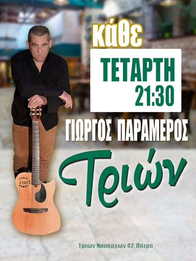 Ο Γιώργος Παράμερος έρχεται κάθε Τετάρτη βράδυ στο αγαπημένο μας "Τριών", "φορτωμένος" με λατρεμένες μελωδίες που θα μας ταξιδέψουν.