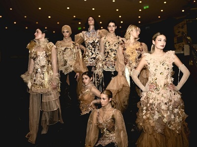 Συνδεδεμένος με τα αρτίστικα ρούχα θεατρικότητας και απίθανων λεπτομερειών «στο χέρι», παρουσίασε αυτή τη φορά μια συλλογή αποκλειστικά σε nude χρώμα.