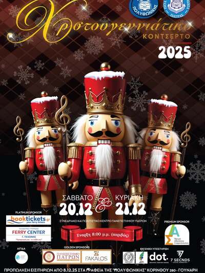 Φέτος θα πραγματοποιηθεί, 20 και 21 Δεκεμβρίου, ημέρες Σάββατο και Κυριακή, στο Συνεδριακό και Πολιτιστικό Κέντρο του Πανεπιστημίου Πατρών, στις 8.00 το βράδυ (ακριβώς).