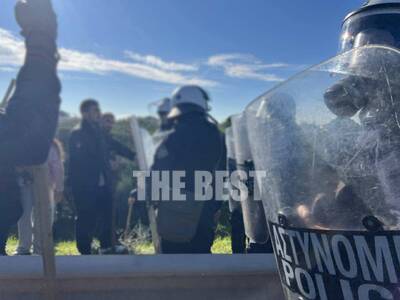 Στη Νέα Εθνική η αστυνομία είχε στήσει φραγμό. Δεν τους επετράπη η διέλευση με τα οχήματα και συνέχισαν με τα πόδια.