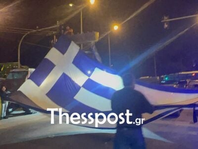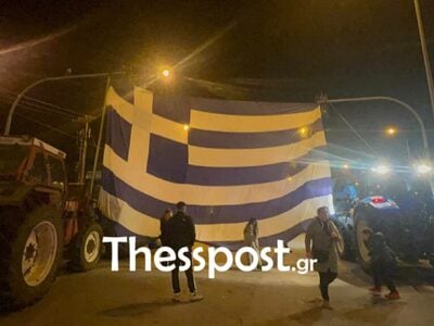 Όπως αναφέρει το thesspost.gr θέλοντας να περάσουν το μήνυμα ότι τα προβλήματα των αγροτών αποτελούν προβλήματα ολόκληρης της κοινωνίας, οι αγρότες κρέμασαν ελληνική σημαία 100 τετραγωνικών μέτρων στους φωτεινούς σηματοδότες.