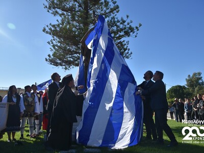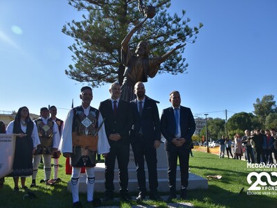 Τα αποκαλυπτήρια του ανδριάντα πραγματοποιήθηκαν από τον σεβασμιότατο Μητροπολίτη Αιτωλίας και Ακαρνανίας κ.κ. Δαμασκηνό, τον Περιφερειάρχη Δυτικής Ελλάδας, κ. Νεκτάριο Φαρμάκη, τον Δήμαρχο Ιεράς Πόλεως Μεσολογγίου, κ. Σπυρίδων Διαμαντόπουλο και τον γλύπτη Ευάγγελο Τύμπα, παρουσία του Αντιπεριφερειάρχη Αιτωλοακαρνανίας, κ. Θανάση Μαυρομμάτη.