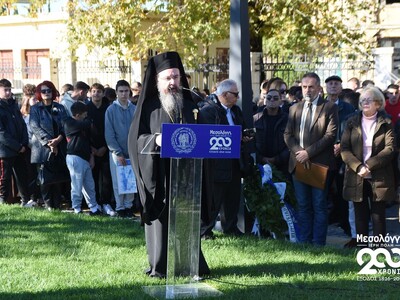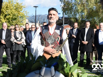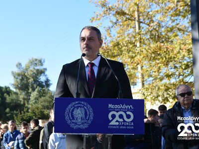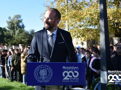 Στον χαιρετισμό του, ο Δήμαρχος Ιεράς Πόλεως Μεσολογγίου, κ. Σπυρίδων Διαμαντόπουλος ευχαρίστησε θερμά τον Περιφερειάρχη Δυτικής Ελλάδας, κ. Νεκτάριο Φαρμάκη, για την πρωτοβουλία και τη γενναιόδωρη χειρονομία του να δημιουργηθεί ο ανδριάντας. Επίσης, ευχαρίστησε τους συνεργάτες του για την ολοκλήρωση της ανάπλασης της πλατείας Δημογέροντα Χρήστου Καψάλη, επισημαίνοντας ότι η αναβάθμιση της Πύλης και της εισόδου της πόλης δεν περιορίζεται μόνο στο αισθητικό μέρος. Αντιθέτως, αποσκοπεί στη δημιουργία ενός ιστορικού τοπόσημου, που θα συμβολίζει τη θυσία των ηρώων και θα ενισχύει τη συλλογική μνήμη του τόπου, με επιπλέον αναβάθμιση και εξωραϊσμό του χώρου.