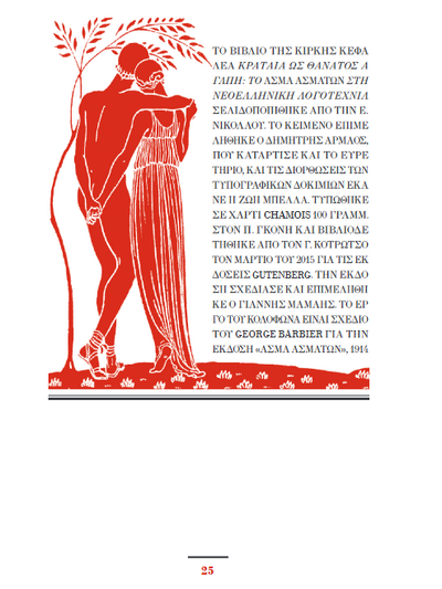 Παρά την μικρή έκταση που καταλαμβάνει ο Κολοφώνας στο σύνολο ενός βιβλίου, συμπυκνώνει με εκλεπτυσμένη γοητεία πληροφορίες για την κοπιώδη προσπάθεια συντελεστών για την έκδοση του.