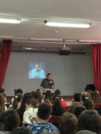 Κατά τη διάρκεια της επίσκεψης, οι μαθητές παρακολούθησαν βίντεο–αφιέρωμα και αναλυτικό χρονικό των επιτυχιών της, όμως εκείνο που τους κέρδισε περισσότερο ήταν η ίδια της η παρουσία: το χαμόγελο, η ευγένεια, η ταπεινότητα και η αμεσότητά της.
