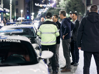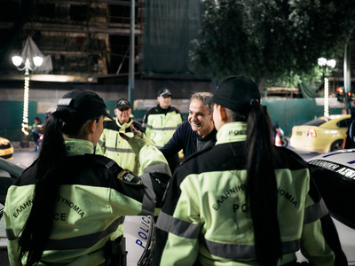 Ο Κυριάκος Μητσοτάκης συνομίλησε με τις γυναίκες και τους άνδρες της ΕΛ.ΑΣ. που βρίσκονταν σε υπηρεσία, τους συνεχάρη για το έργο τους και τους ευχαρίστησε για την άοκνη προσφορά τους, μέρα και νύχτα, καθ’ όλη τη διάρκεια του έτους.