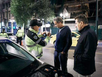 Σε μπλόκο της Τροχαίας για αλκοτέστ στην οδό Στραδίου βρέθηκε το βράδυ ο πρωθυπουργός Κυριάκος Μητσοτάκης , συνοδευόμενος από τον υπουργό Προστασίας του Πολίτη, Μιχάλη Χρυσοχοΐδη.