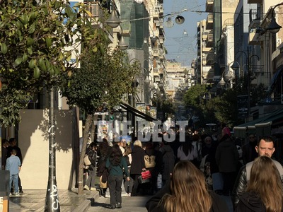 Από νωρίς το πρωί, η εικόνα στο κέντρο της πόλης θύμιζε έντονα γιορτινή περίοδο, με αρκετό κόσμο να κάνει τη βόλτα του και να ξεκινά τις πρώτες αγορές.