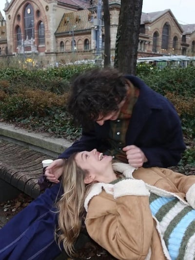 Στις εικόνες που ανάρτησε, εμφανίζεται μαζί με τον πρωταγωνιστή και δημιουργό του Maestro σε διάφορα σημεία της πόλης, να ποζάρουν άλλοτε κάνοντας βόλτα με ποδήλατο και άλλοτε σε μια γιορτινή χριστουγεννιάτικη αγορά.