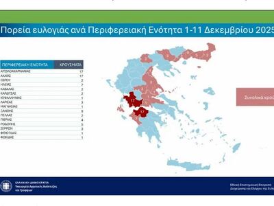 Για το διάστημα 1–11 Δεκεμβρίου 2025 καταγράφονται 77 επιβεβαιωμένα κρούσματα σε 95 εκτροφές.